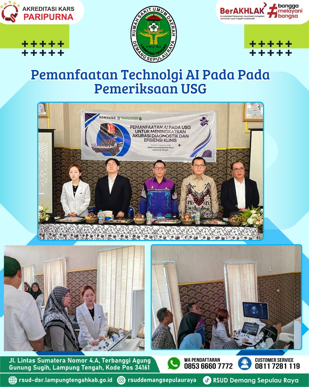 Pada kesempatan tersebut dipaparkan dan juga dilakukan simulasi alat USG oleh Tim dari Samsung Digital Technology Asia, PT. Bumi Sriwijaya Lestari bahwa pemanfaatan teknologi AI pada USG samsung sudah terbukti efektif, efisian dengan hasil lebih akurat. Tehnologi AI pada USG ini sudah digunakan dibeberapa negara maju, seperti Amerika, Malaysia, Singapura dll. Untuk di Lampung sendiri Samsung Digital Technology Asia, PT. Bumi Sriwijaya Lestar baru memperkenalkan Tehnologi AI pada USG ini pada RSUD Demang Sepulau Raya.