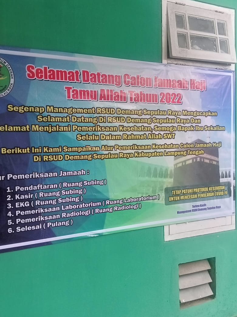 RSUD Demang Sepulau Raya memberikan pelayanan pemeriksaan kesehatan bagi calon jemaah Haji tahun 2022 dimulai dari tanggal 14 Maret sampai dengan 25 Maret 2022