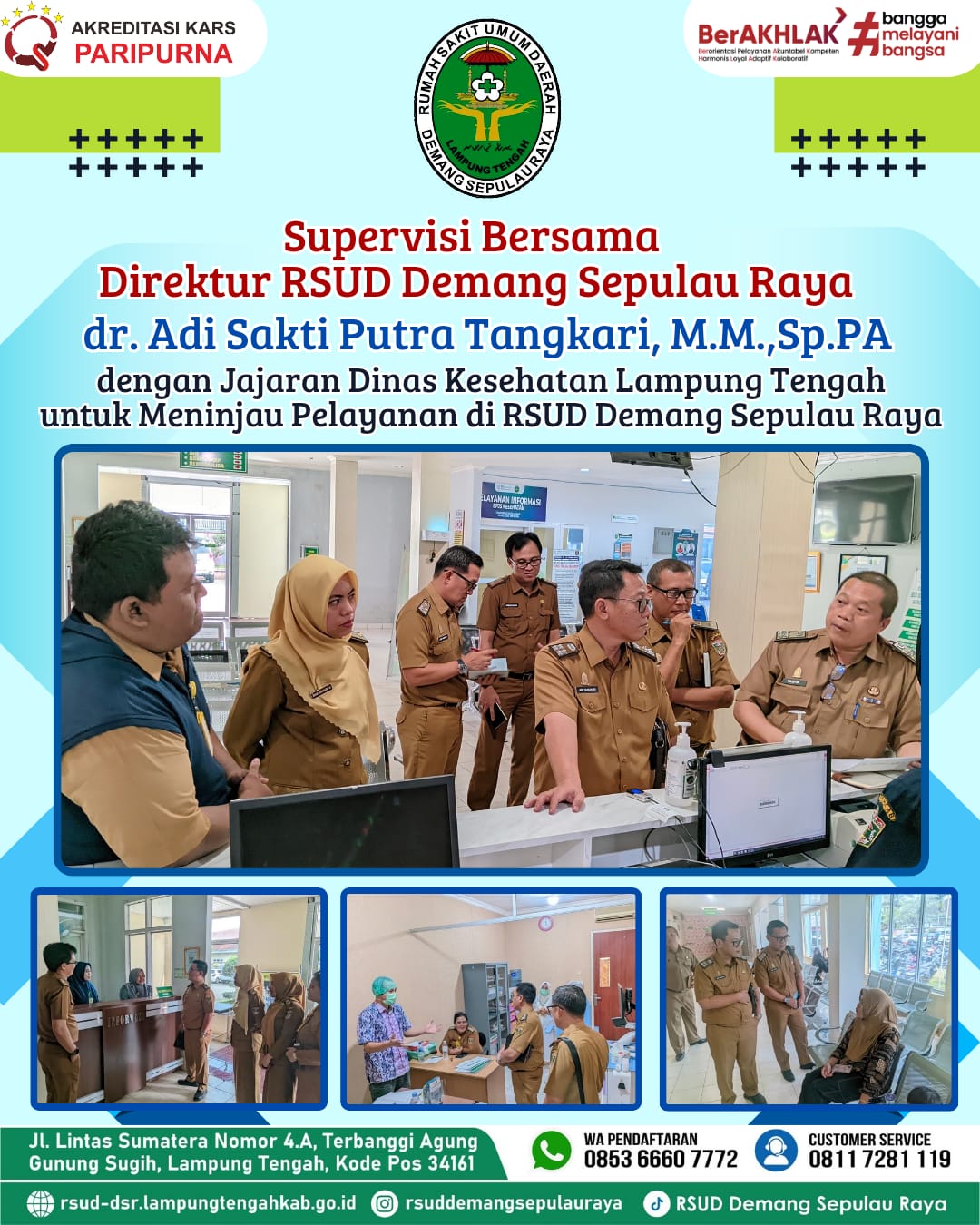 Pada tanggal 28 Juli,  Direktur RSUD Demang Sepulau Raya bersama jajaran pejabat Dinas Kesehatan Lampung Tengah melakukan supervisi pelayanan kesehatan di RSUD Demang Sepulau Raya.  Kegiatan ini bertujuan untuk memastikan kualitas dan efektivitas pelayanan kesehatan yang diberikan kepada masyarakat.